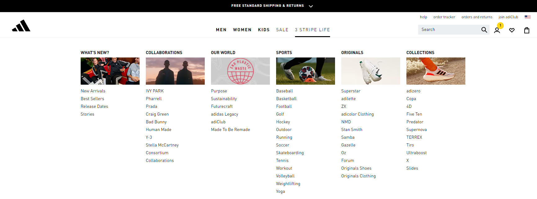 Несмотря на то, что компания немецкая, ее товары продаются по всему миру, популярны они и в США. Кроме сети оффлайновых магазинов, Adidas имеет официальный интернет-магазин www.adidas.com/us , где представлена одежда, обувь, аксессуары для мужчин, женщин и детей. На сайте можно увидеть последние актуальные коллекции, интересные коллаборации с другими брендами и известными дизайнерами.