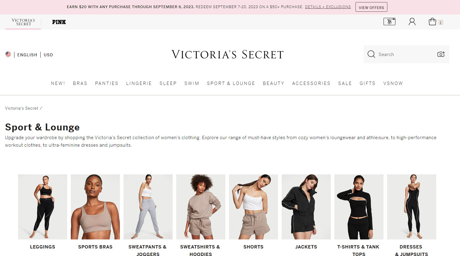 Также на этом же сайте можно перейти на магазин Pink, это бренд Victoria’s Secret, ориентированный на более прогрессивную молодую аудиторию. Его обычно выбирают молодые девушки и подростки. На сайте представлена повседневная и спортивная одежда, нижнее белье, аксессуары и косметика. Цены на товары немного ниже, чем в Victoria’s Secret.