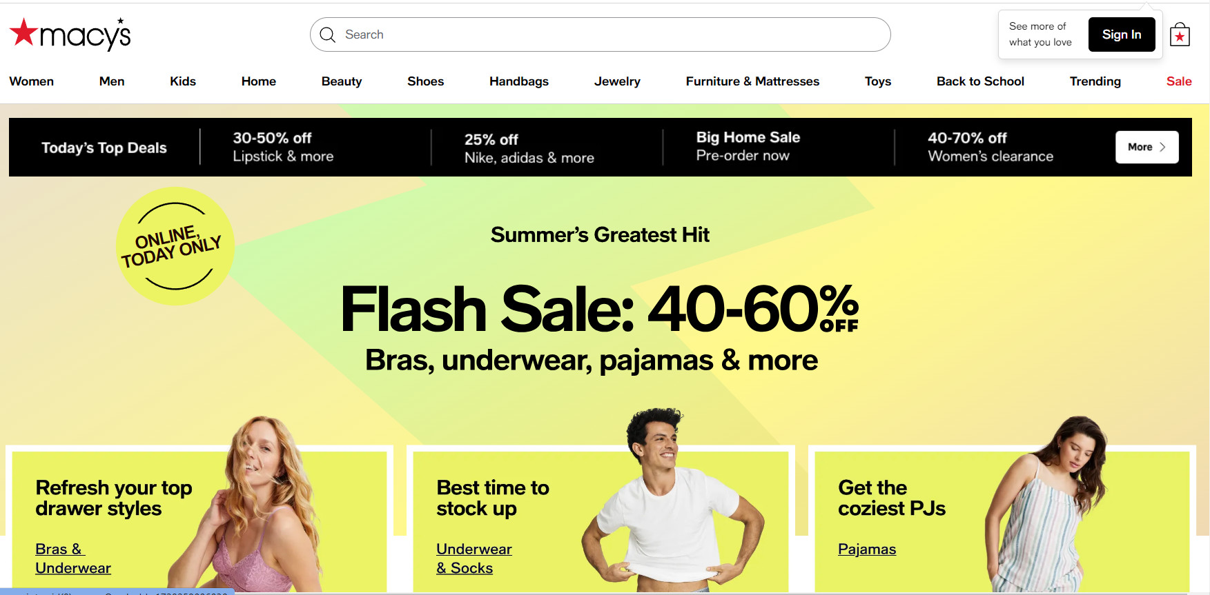 Интернет-магазин Macy’s предлагает своим клиентам богатый ассортимент товаров, включающий одежду, обувь, аксессуары, косметику, парфюмерию, товары для дома, мебель и многое другое. Macy’s сотрудничает с известными брендами, такими как Calvin Klein, Michael Kors, Ralph Lauren, Estée Lauder, Clinique, Lancôme и многими другими, что гарантирует высокое качество и стильную продукцию. Каждый покупатель найдет что-то для себя, будь то повседневная одежда, вечерние наряды, спортивные товары или уникальные предметы интерьера.