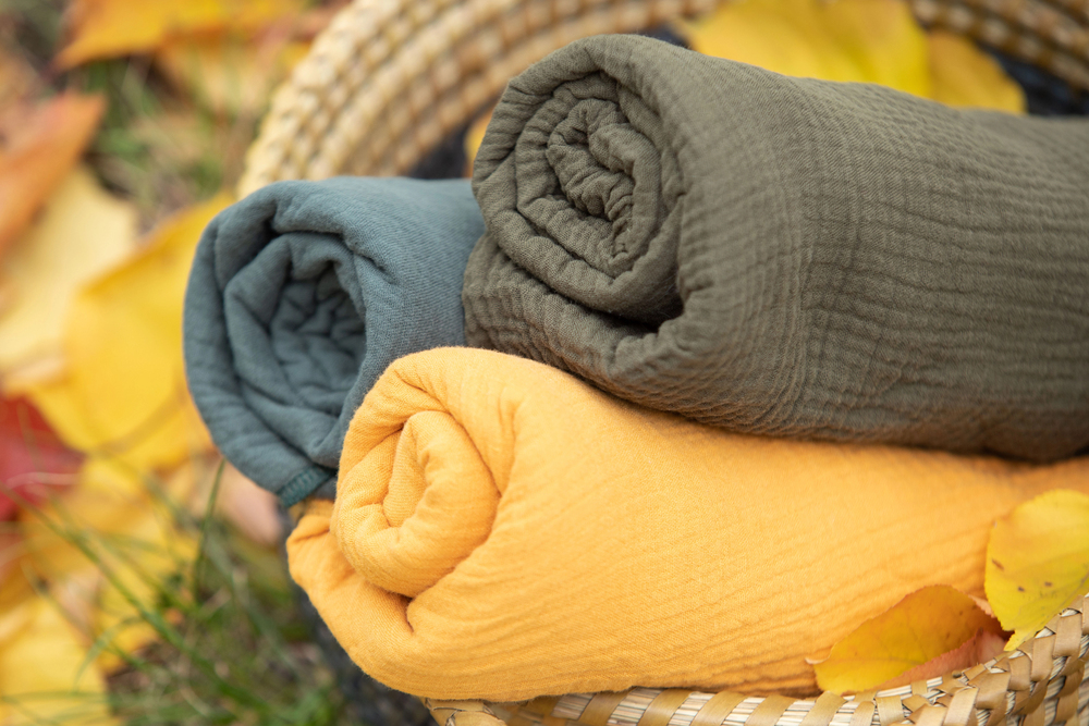 - Мягкость и плотность: ткань не должна быть ни слишком тонкой, ни грубой. Для новорождённых предпочтительнее мягкий муслин, для старших детей — перкаль или фланель.
