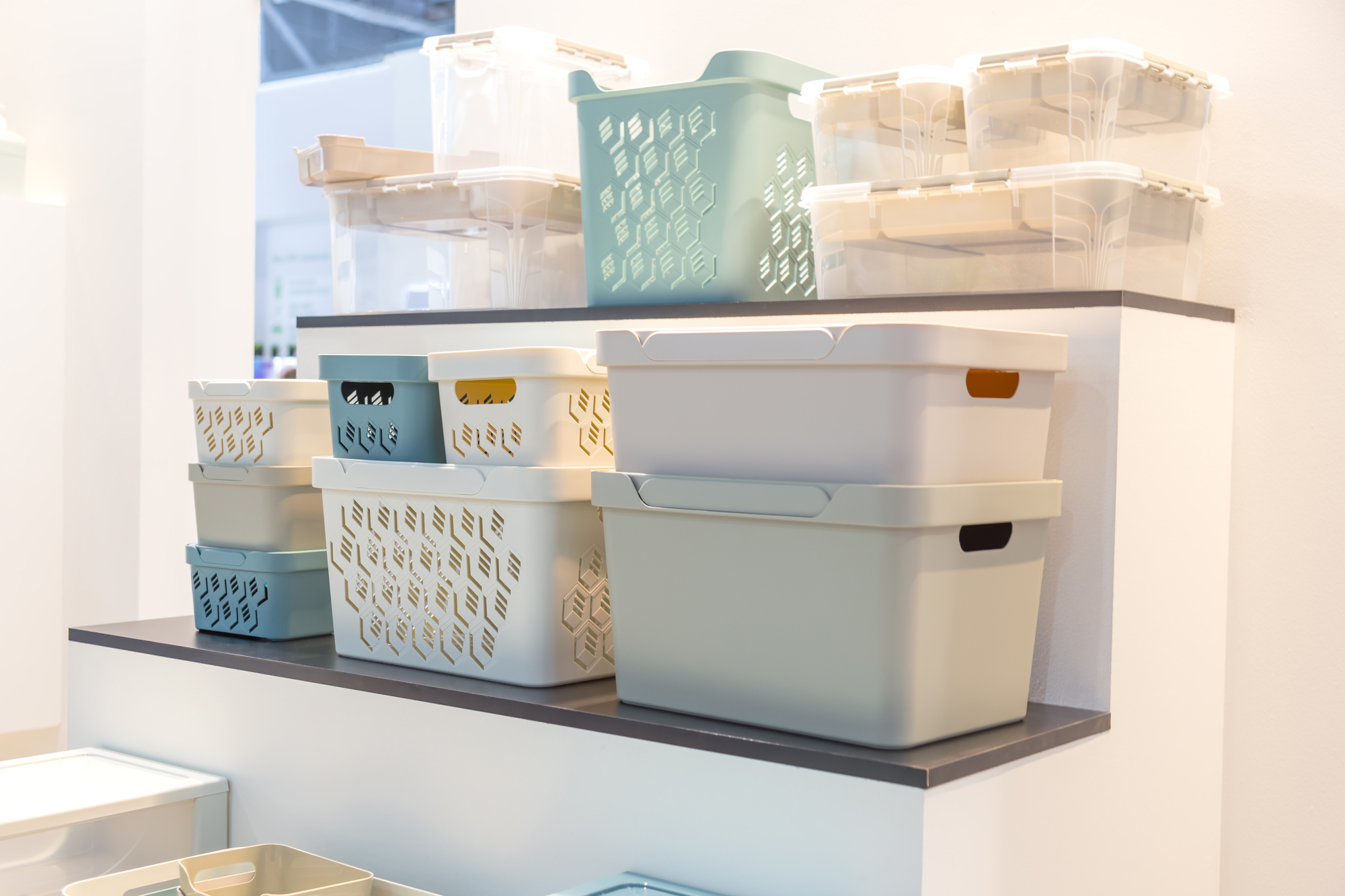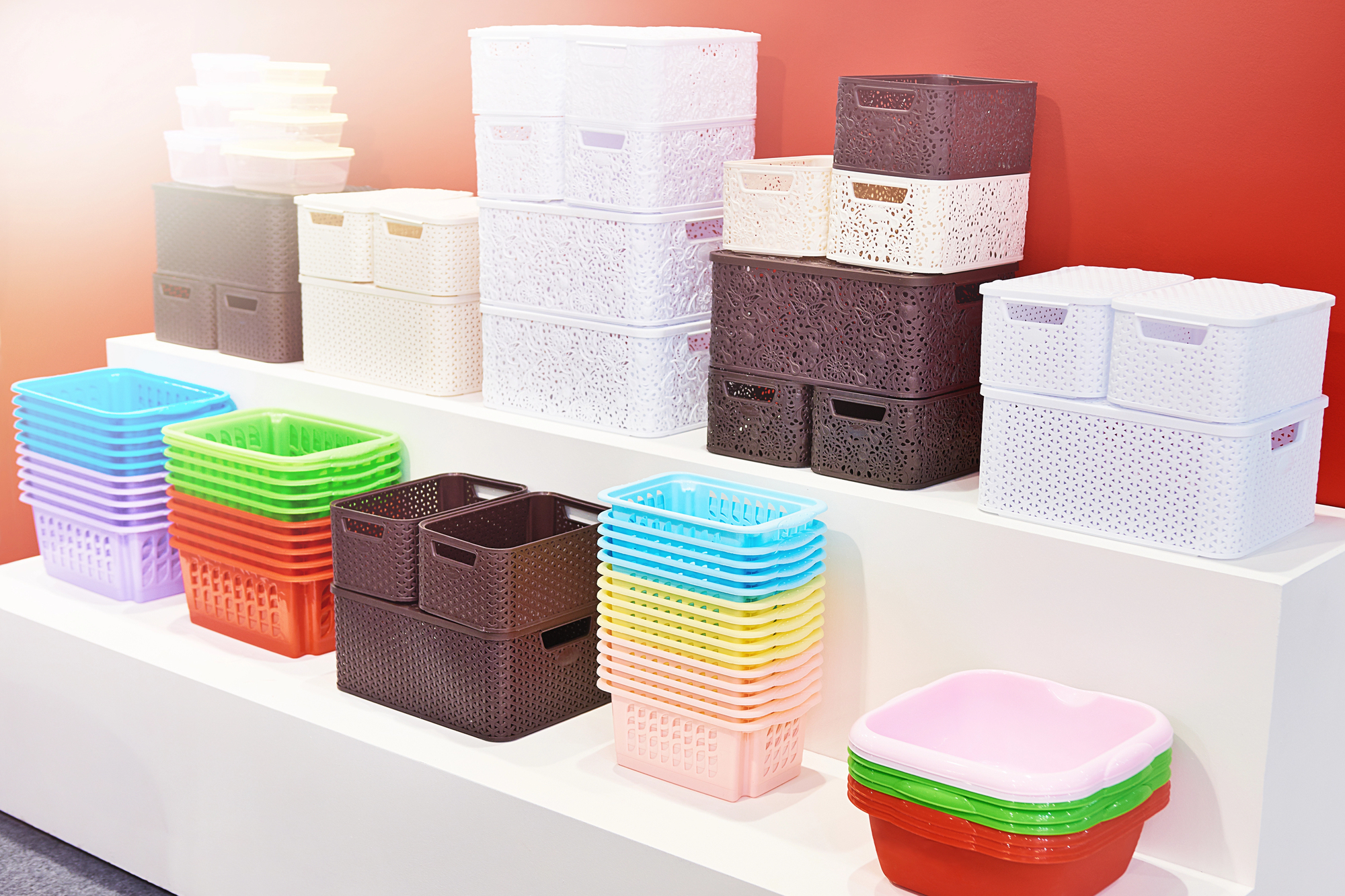 - Міцні пластикові контейнери для зберігання продуктів і речей.