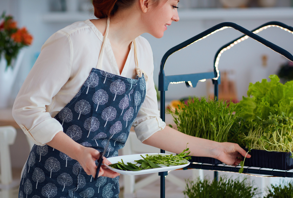 - Гідропонні системи для вирощування овочів і зелені в приміщенні (AeroGarden, Click and Grow).